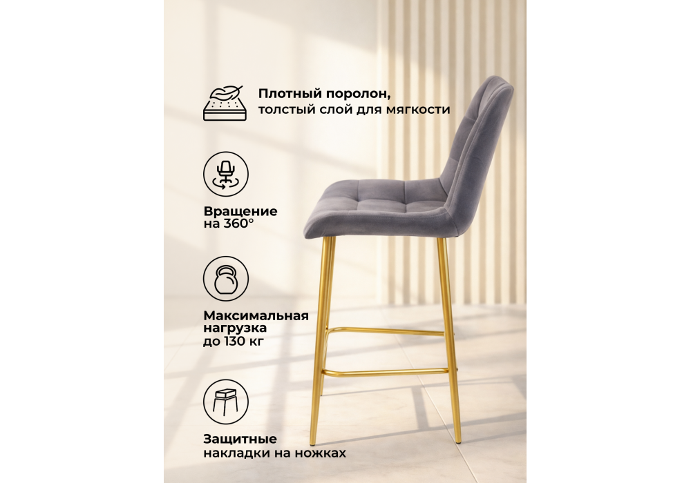 Купить "Барный стул поворотный Woodville Челси 360 темно-серый (zd 995) / золотой np 632553"