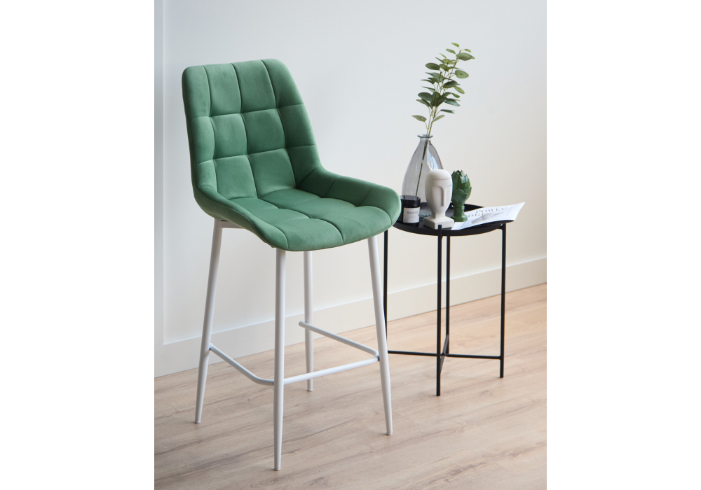 Материал каркаса - металл; Материал сиденья - велюр; Материал обивки - велюр; Цвет ножек - белый; Ширина - 50; Глубина - 58; Высота - 99; Ширина сиденья - 46; Глубина сиденья - 41; Высота сиденья - 63;