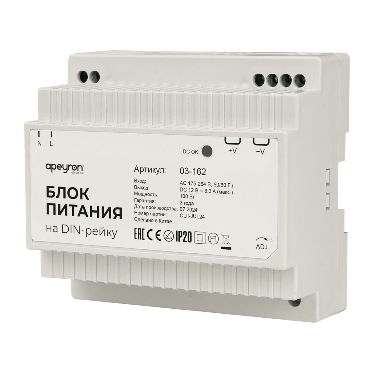 Блок питания на DIN рейку Apeyron 03-162 Абакан