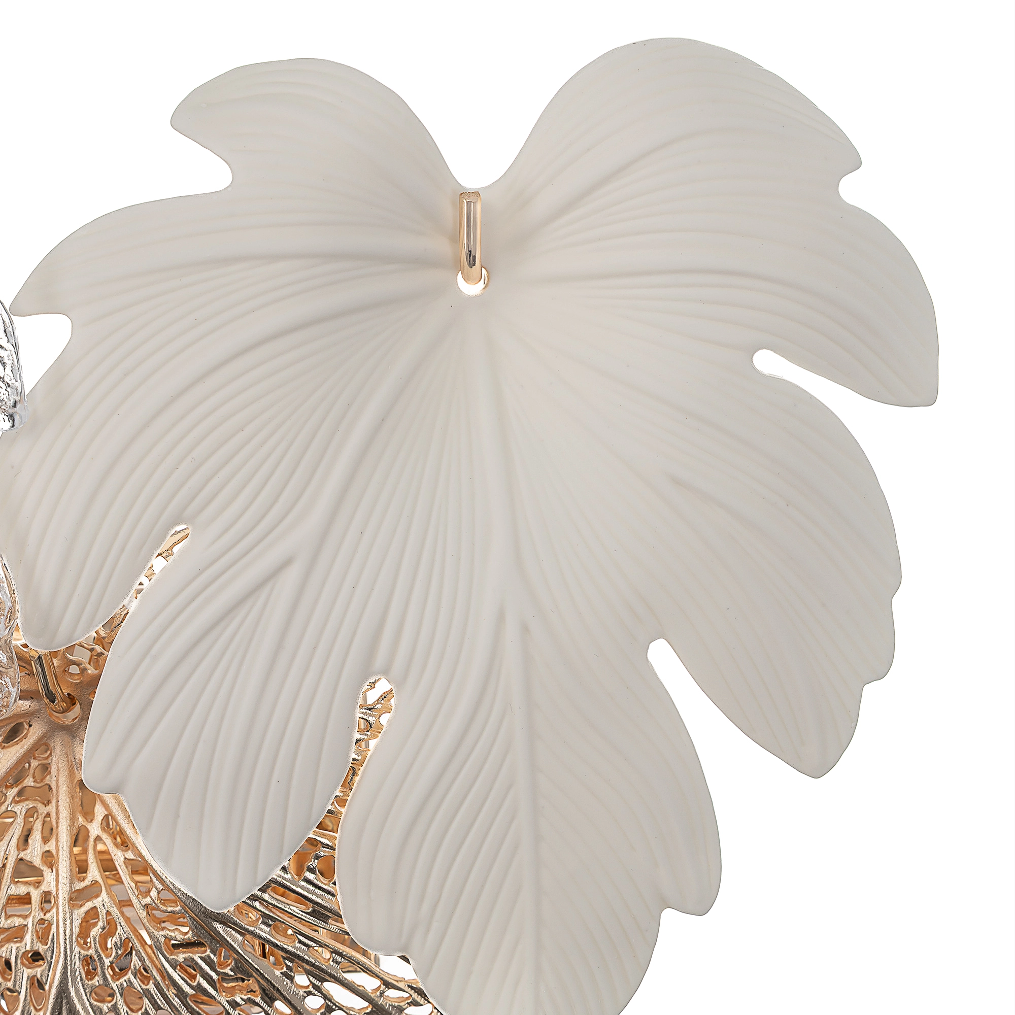 Металлический каркас благородного золотого оттенка дополняют изумительные стеклянные листья, которые формируют утонченный силуэт бра. В светильнике используются 3 лампочки с цоколем E14, максимальная мощность каждой — 60Вт для ламп накаливания.