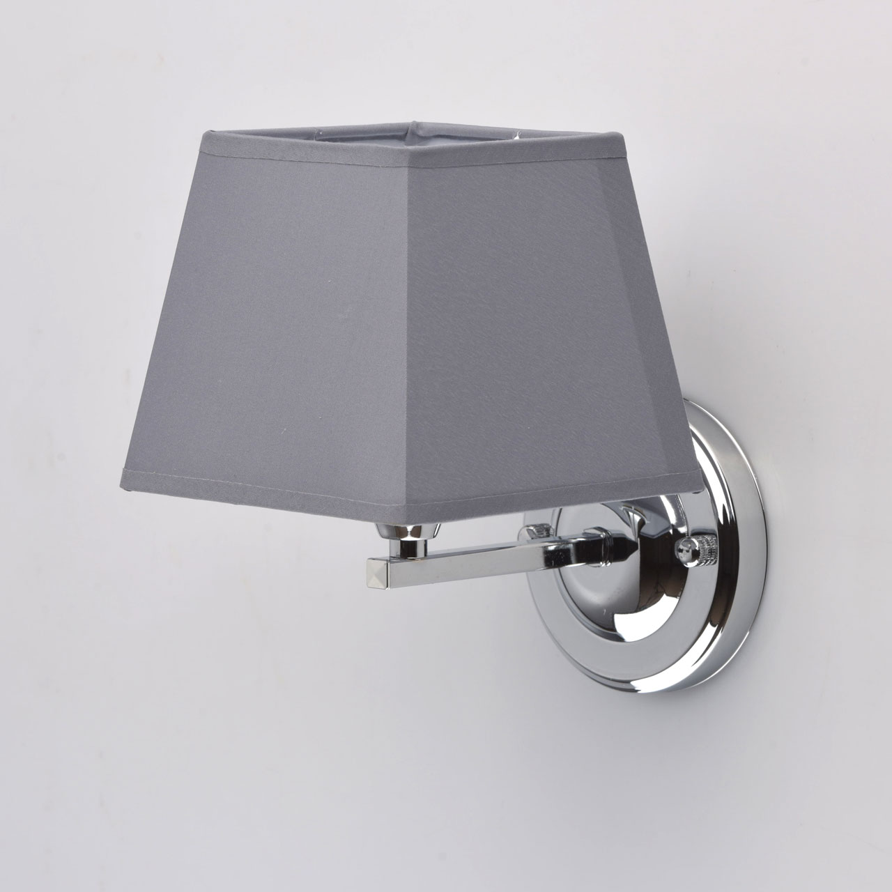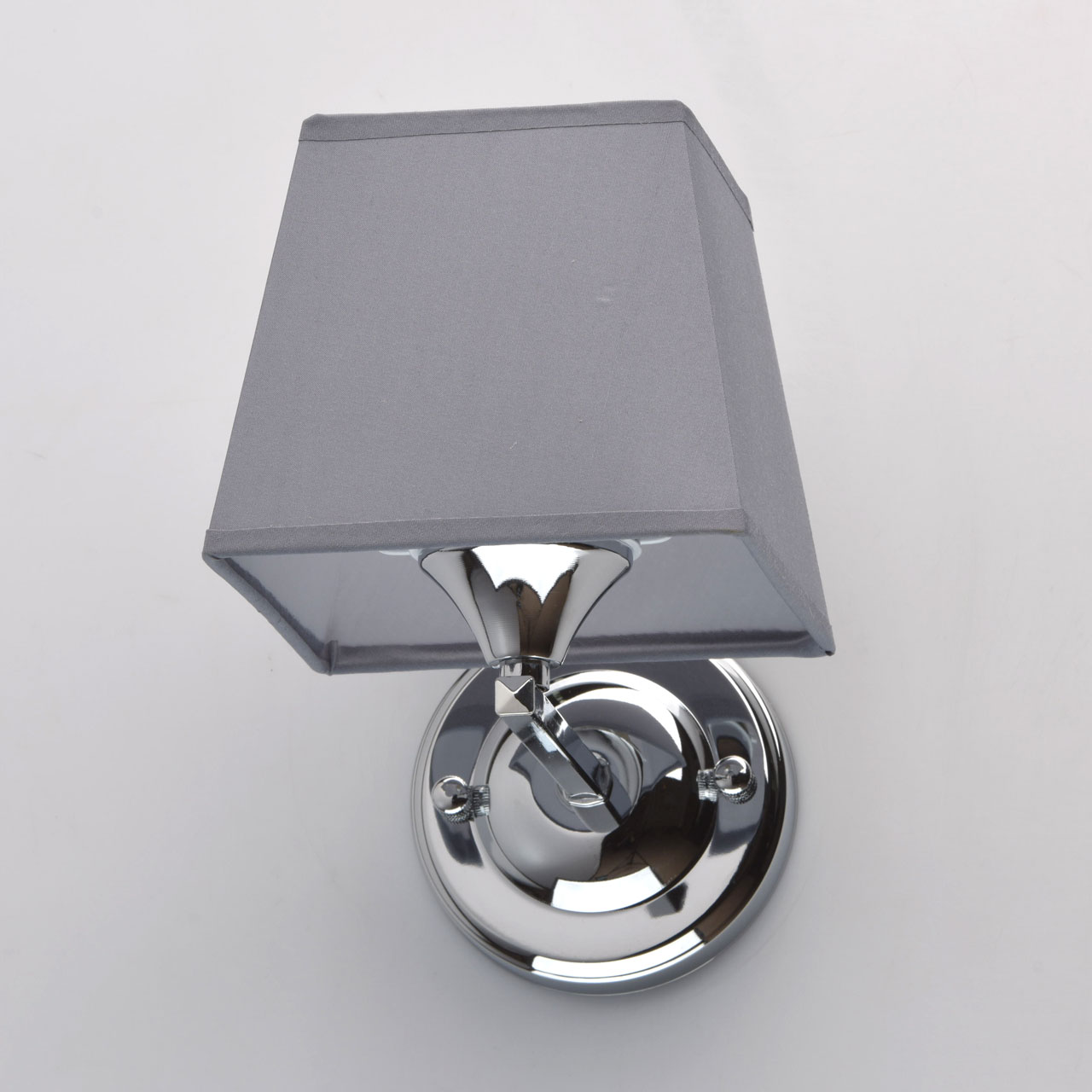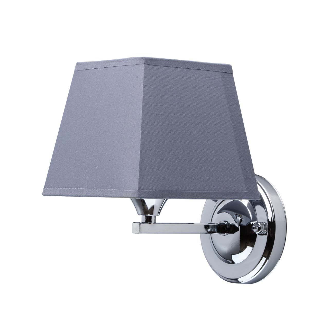 Основание бра: металл, гальваника в цвет хрома. Абажур: текстиль, цвет графит, термостойкий акрил внутри.