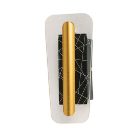 Металлический корпус настенного бра окрашен в черный цвет. Корпус плафона выполнен из сплава алюминия и окрашен в цвет золота. Настенное бра декорировано изящным элементом из прозрачного акрила в виде крыльев бабочки с линейной фактурой.