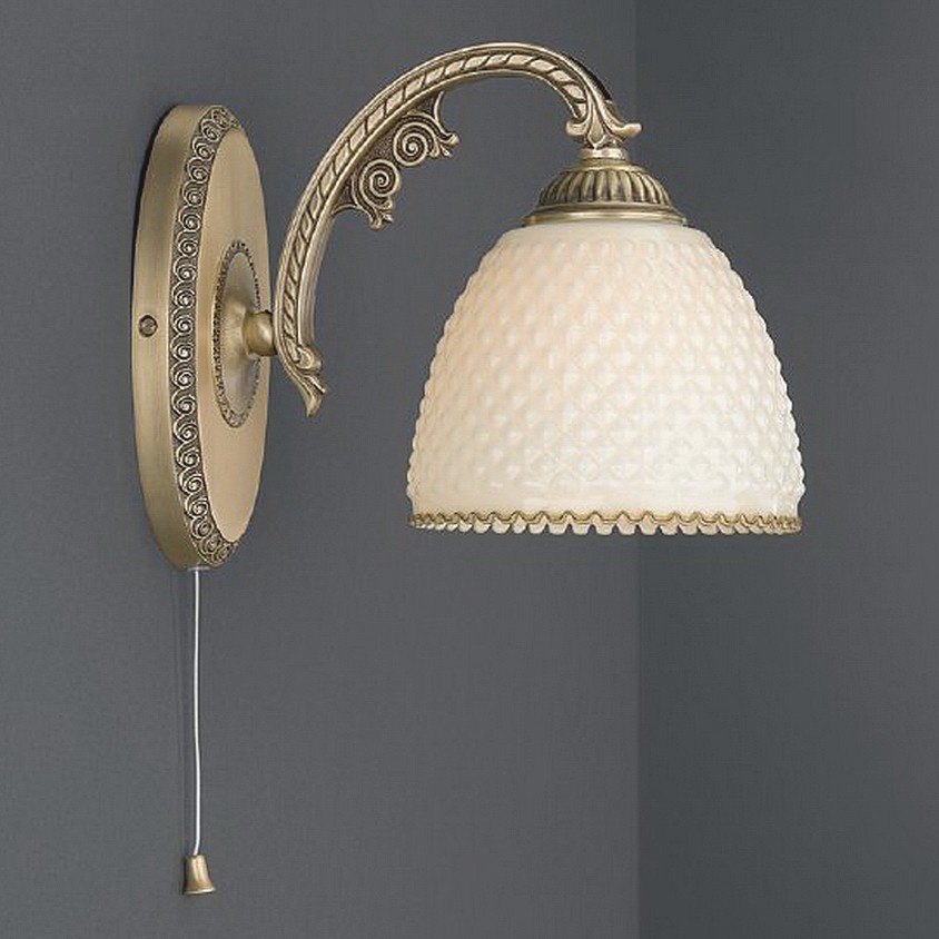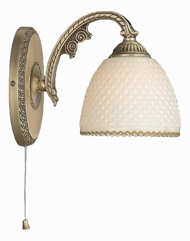 Бра Reccagni Angelo A 7005/1 Итальянского производсва – лучшее соотношение цена-качество. Этот светильник Классического стиля хорошо подойдет Для гостиной и придаст помещению мягкий и приятный свет. Плафоны белые из стекла. Арматура бронза из металла. Кол-во ламп - шт. Общая мощность 120W