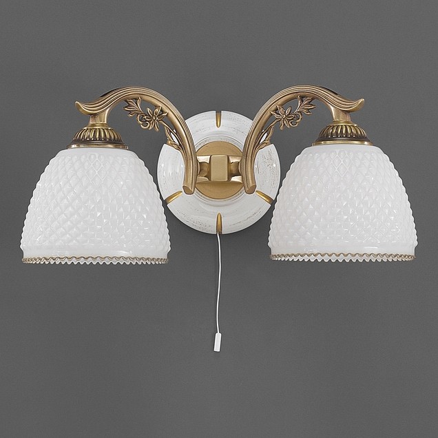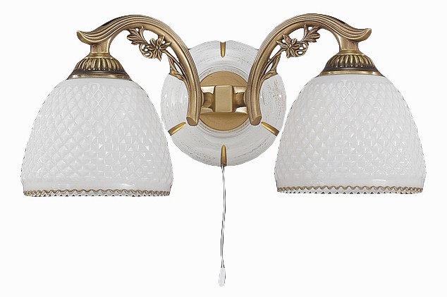 Бра Reccagni Angelo A 8606/2 Итальянского производсва – отличный выбор для Вас. Этот светильник Классического стиля хорошо подойдет Для гостиной и придаст помещению мягкий и приятный свет. Плафоны белые из стекла. Арматура бронза из металла. Кол-во ламп - 2шт. Общая мощность 120W