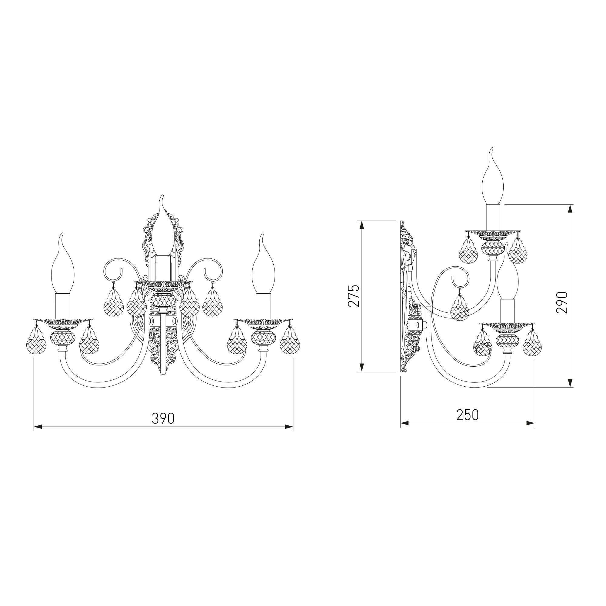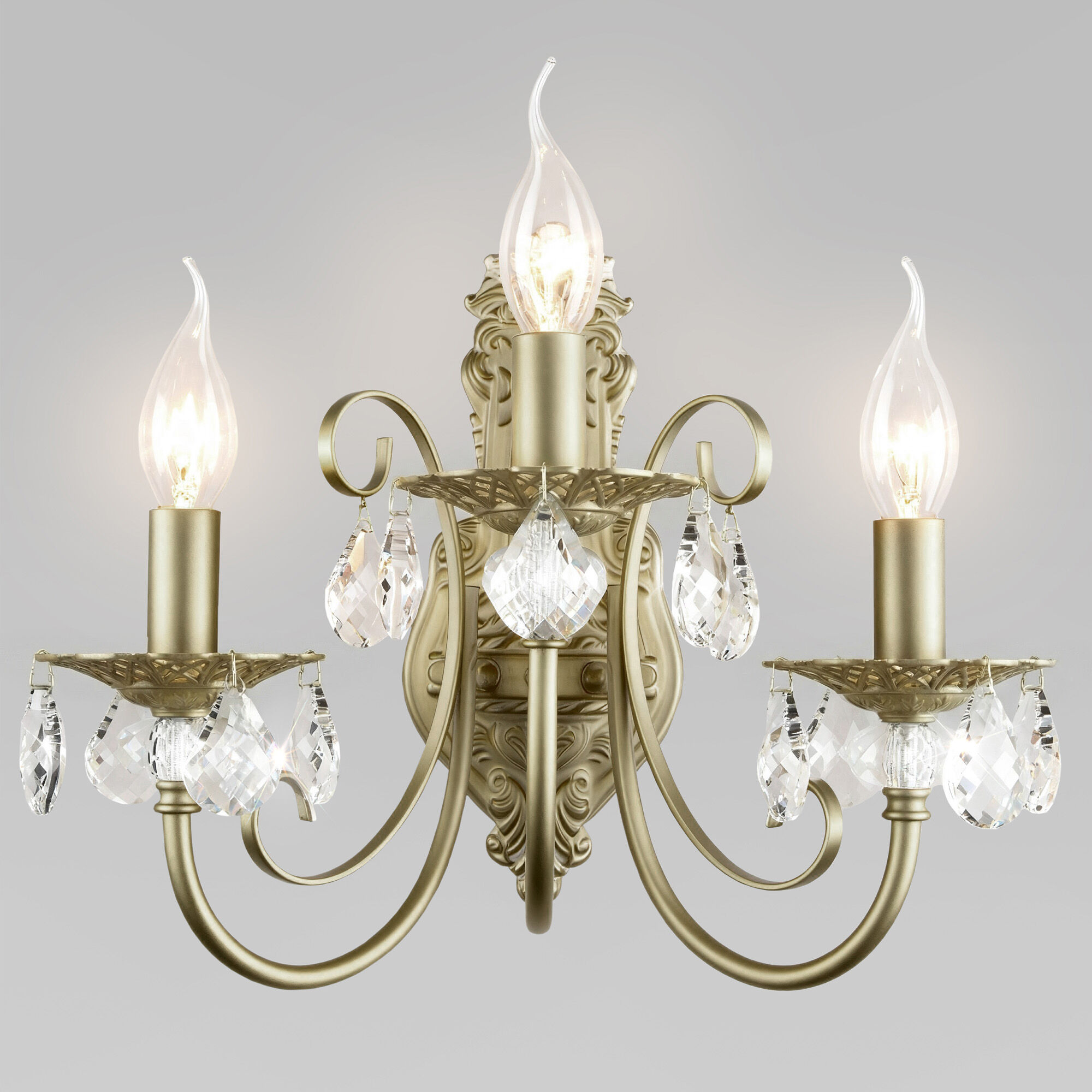 Светильник для тех, кто ценит традиции и безупречное качество. Латунная арматура с детализированными вензелями не тускнеет со временем, сохраняя благородный блеск, а бесцветный хрусталь преломляет свет, создавая эффектную игру бликов.