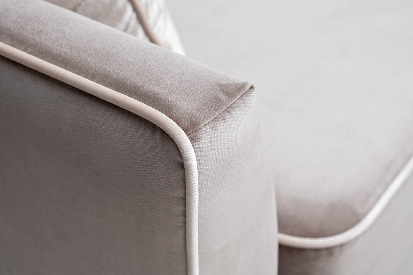 В стандартном исполнении: обивка Комбо в тканях коллекции Garda Decor: диван - вельвет Velv-SBEG, кант - вельвет Velv-ECRU, подушки спинки- вельвет с принтом Umbr-SBEG.