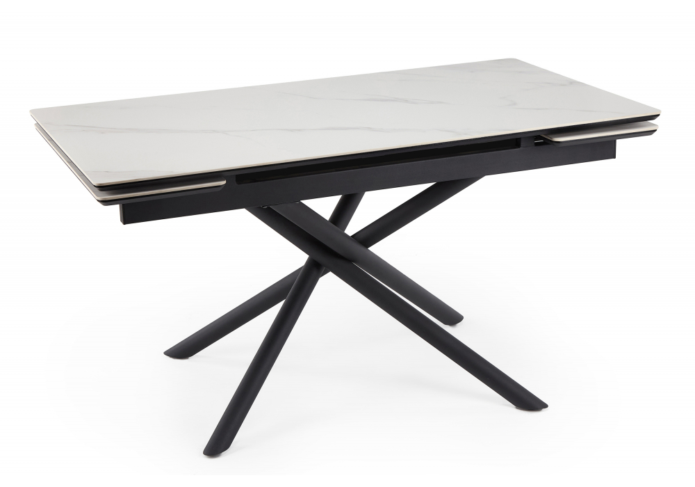 Керамический стол раскладной 140 (200) х 80 Woodville Мэриан snow alpin white / черный 625721 Абакан