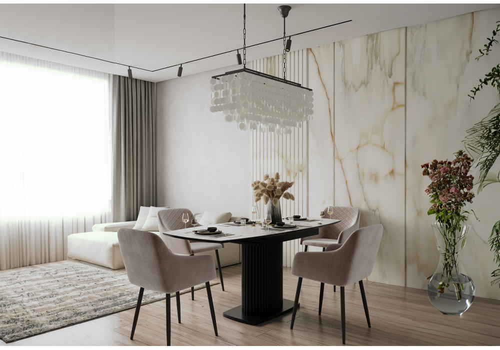 Керамический стол раскладной Woodville Фестер 140(180)х80 белый мрамор snow white / черный 614245 Абакан