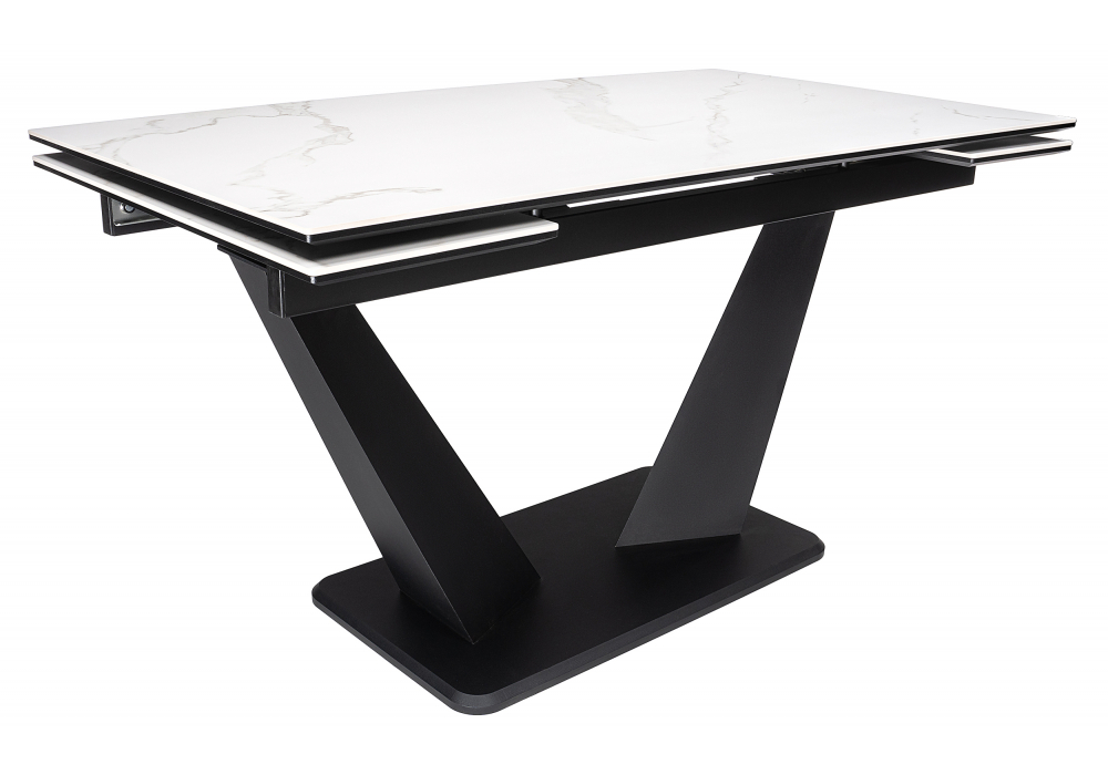 Материал каркаса - МДФ; Материал ножек - МДФ; Материал столешницы - Керамика / МДФ; Цвет каркаса - Черный / белый; Цвет ножек - Черный; Цвет столешницы - Белый; Ширина - 80; Высота - 76; Длина стола в разложенном виде - 200; Длина - 140