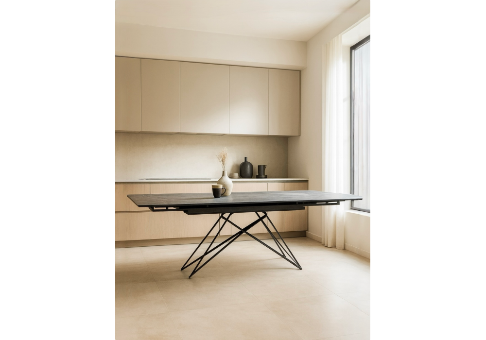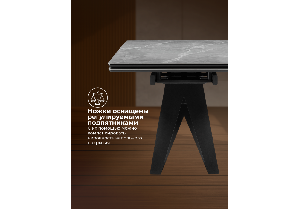 Керамический стол раздвижной Woodville Блэкберн 140(200)х80 серый мрамор larka grey / черный 625933 Абакан