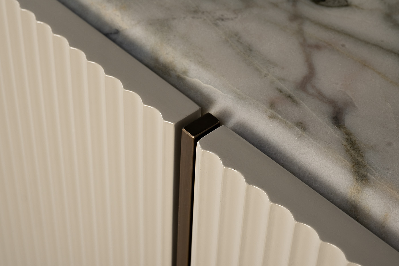 Этот элегантный комод серого цвета станет настоящей изюминкой вашей гостиной или спальни. Изысканный рельеф фасадов, напоминающий струящиеся шелковые ткани, придает ему легкость и изящество, а лаконичная геометрия формы подчеркивает безупречный вкус владе...