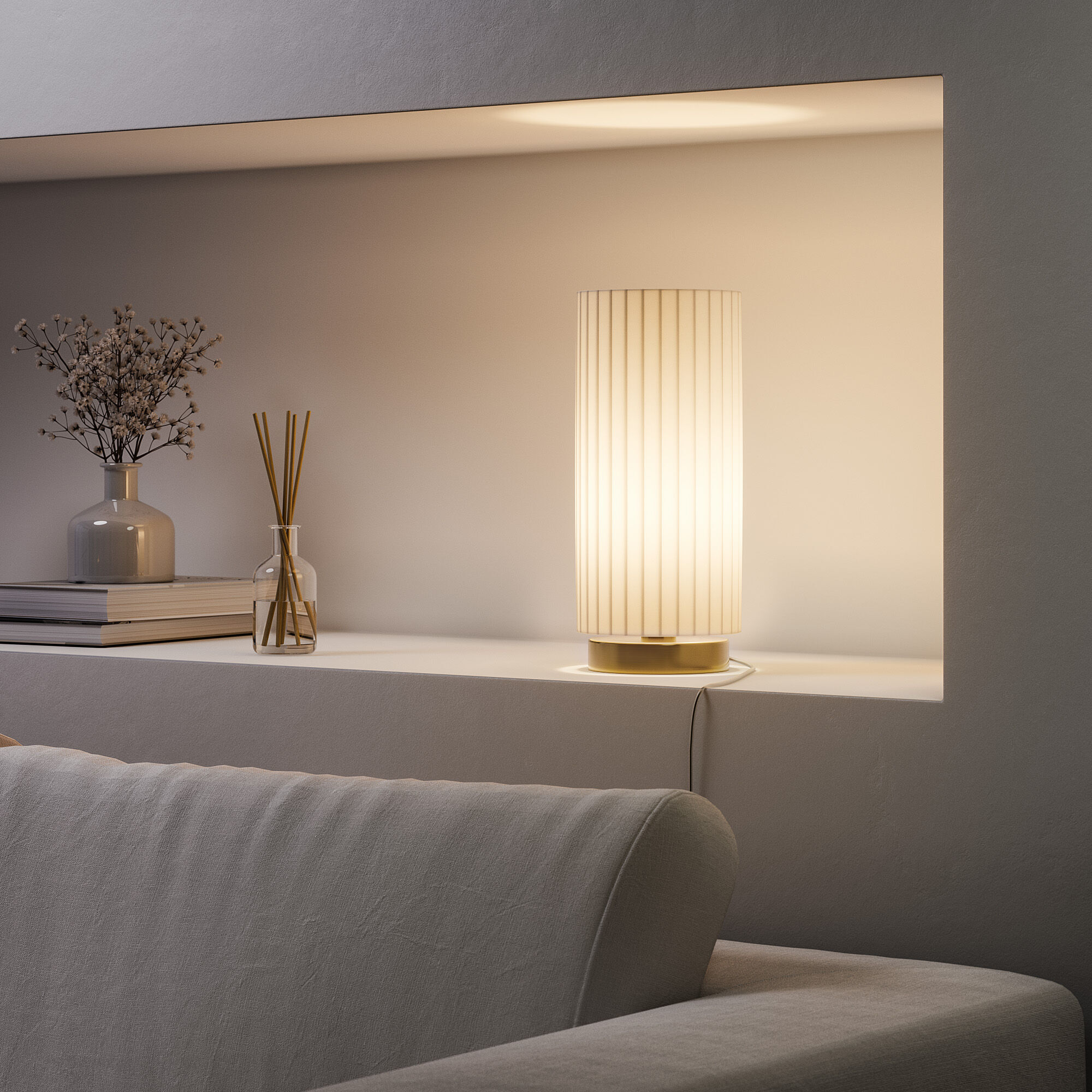 Вертикальные складки тканевого плафона и арматура в цвете латунь придают минималистичнному дизайну современный и элегантный вид, который гармонично впишется в любой интерьер.
