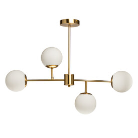 Металлическое основание окрашено в черный цвет. Отдельные элементы основания окрашены в цвет золота. Заменяемые источники света с цоколем G9 закрыты матовыми стеклянными плафонами.