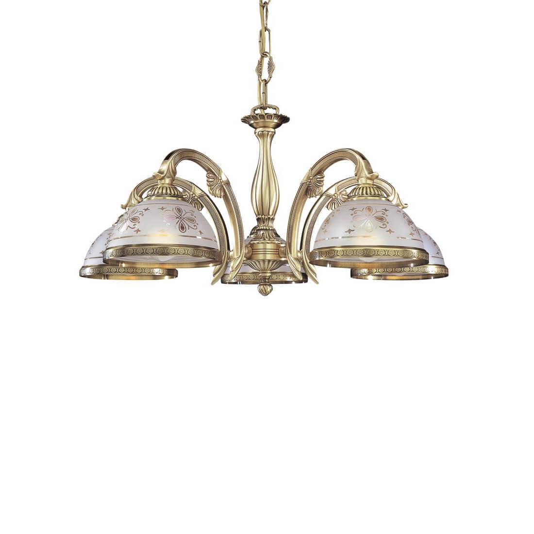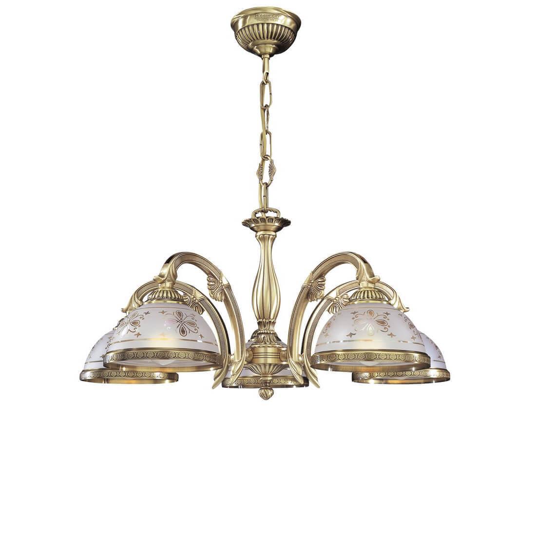 Подвесная люстра Reccagni Angelo L 6002/5 Итальянского производсва – лучшее соотношение цена-качество. Этот светильник Классического стиля хорошо подойдет Для гостиной и придаст помещению мягкий и приятный свет. Плафоны белые из стекла. Арматура бронза из металла. Кол-во ламп - 5шт. Общая мощность 300W
