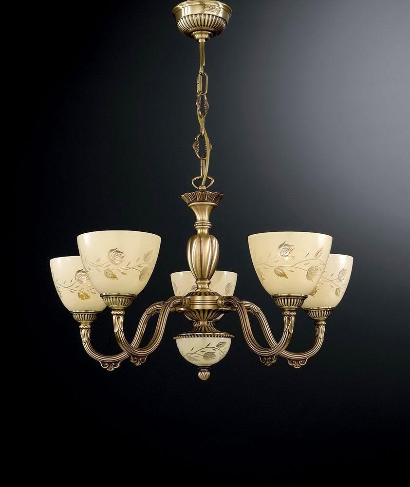 Подвесная люстра Reccagni Angelo L 6258/5 Итальянского производсва – уникальное сочетание высокого качества и удивительных фактур. Этот светильник Классического стиля хорошо подойдет Для спальни и придаст помещению мягкий и приятный свет. Плафоны белые из стекла. Арматура бронза из металла. Кол-во ламп - 5шт. Общая мощность 300W