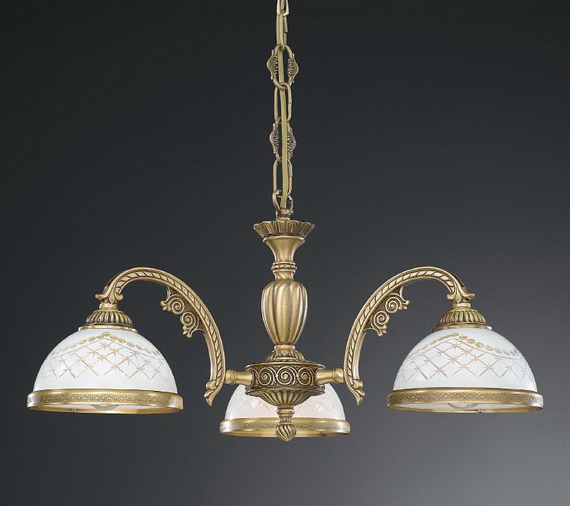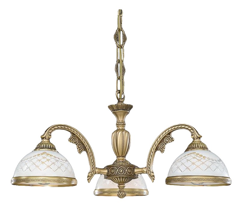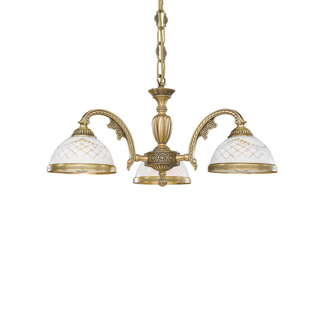 Подвесная люстра Reccagni Angelo L 7002/3 Итальянского производсва – отличный выбор для Вас. Этот светильник Классического стиля хорошо подойдет Для гостиной и придаст помещению мягкий и приятный свет. Плафоны белые из стекла. Арматура бронза из металла. Кол-во ламп - 3шт. Общая мощность 180W