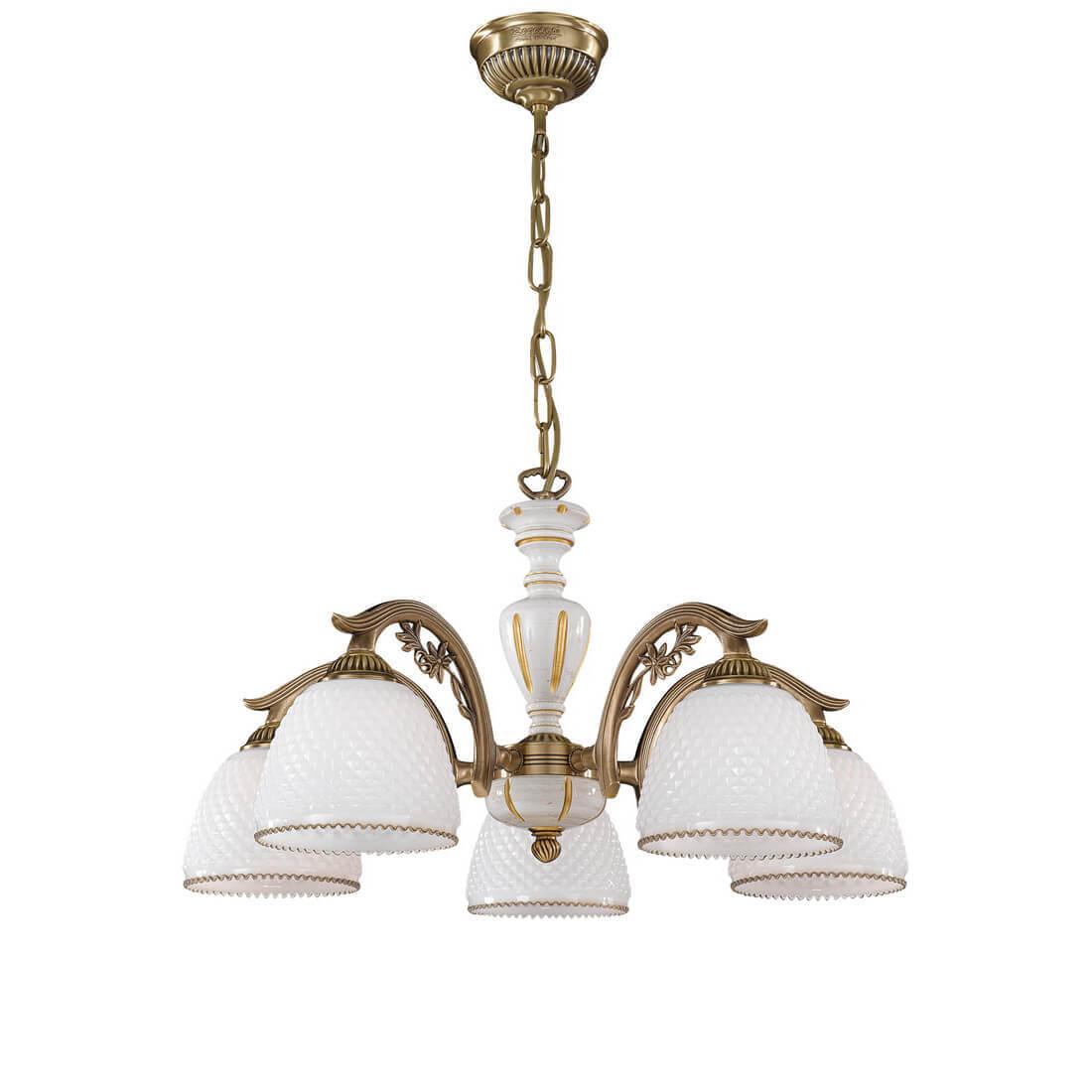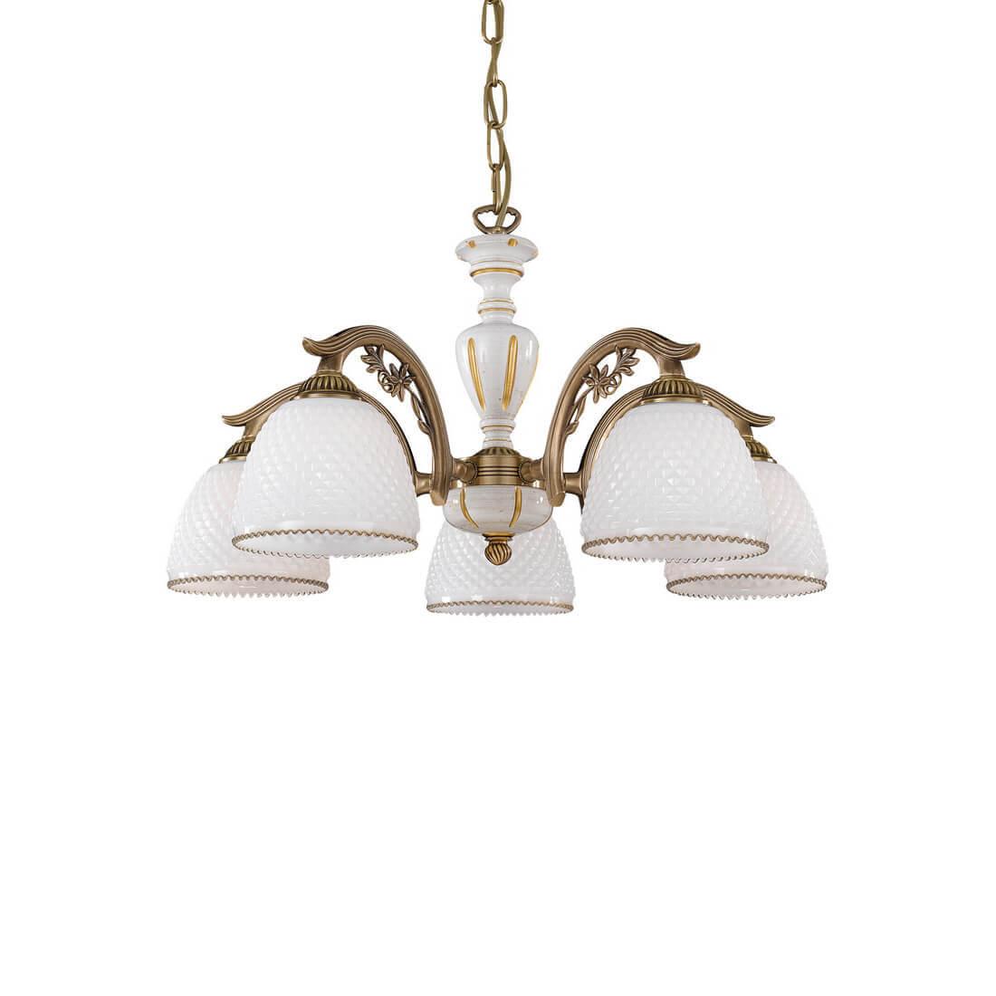 Подвесная люстра Reccagni Angelo L 8606/5 Итальянского производсва – уникальное сочетание высокого качества и удивительных фактур. Этот светильник Классического стиля хорошо подойдет Для гостиной и придаст помещению мягкий и приятный свет. Плафоны белые из стекла. Арматура бронза из металла. Кол-во ламп - 5шт. Общая мощность 300W