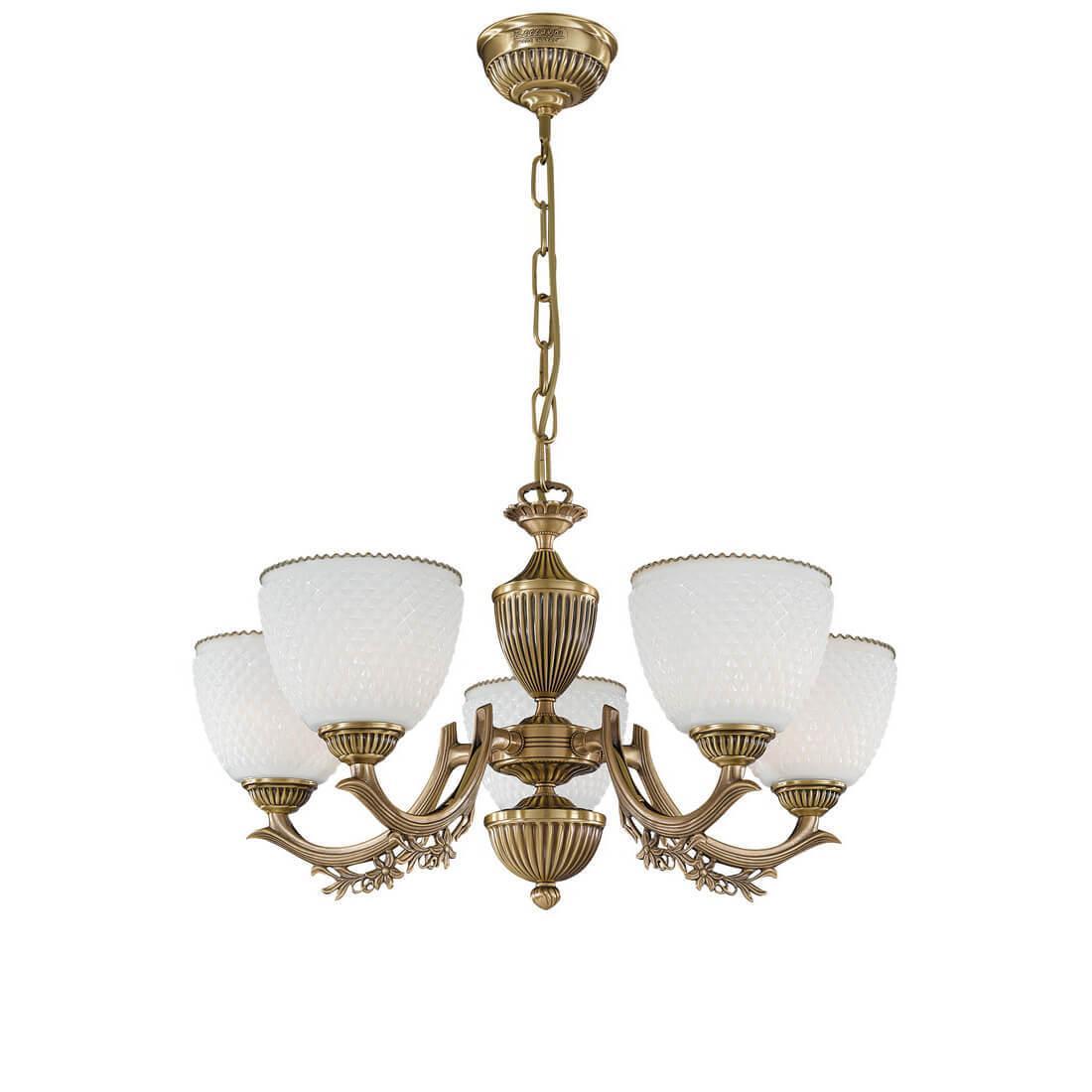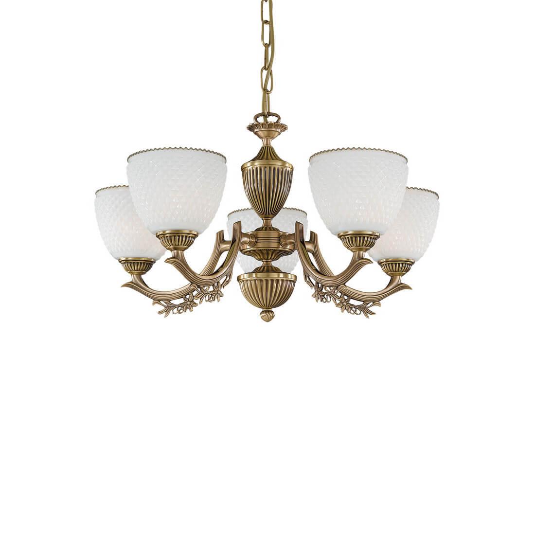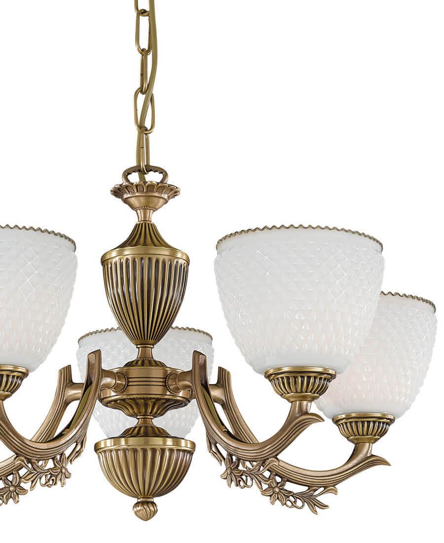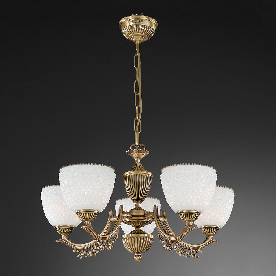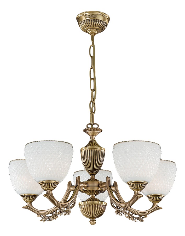 Подвесная люстра Reccagni Angelo L 8651/5 Итальянского производсва – лучшее соотношение цена-качество. Этот светильник Классического стиля хорошо подойдет Для гостиной и придаст помещению мягкий и приятный свет. Плафоны белые из стекла. Арматура бронза из металла. Кол-во ламп - 5шт. Общая мощность 300W