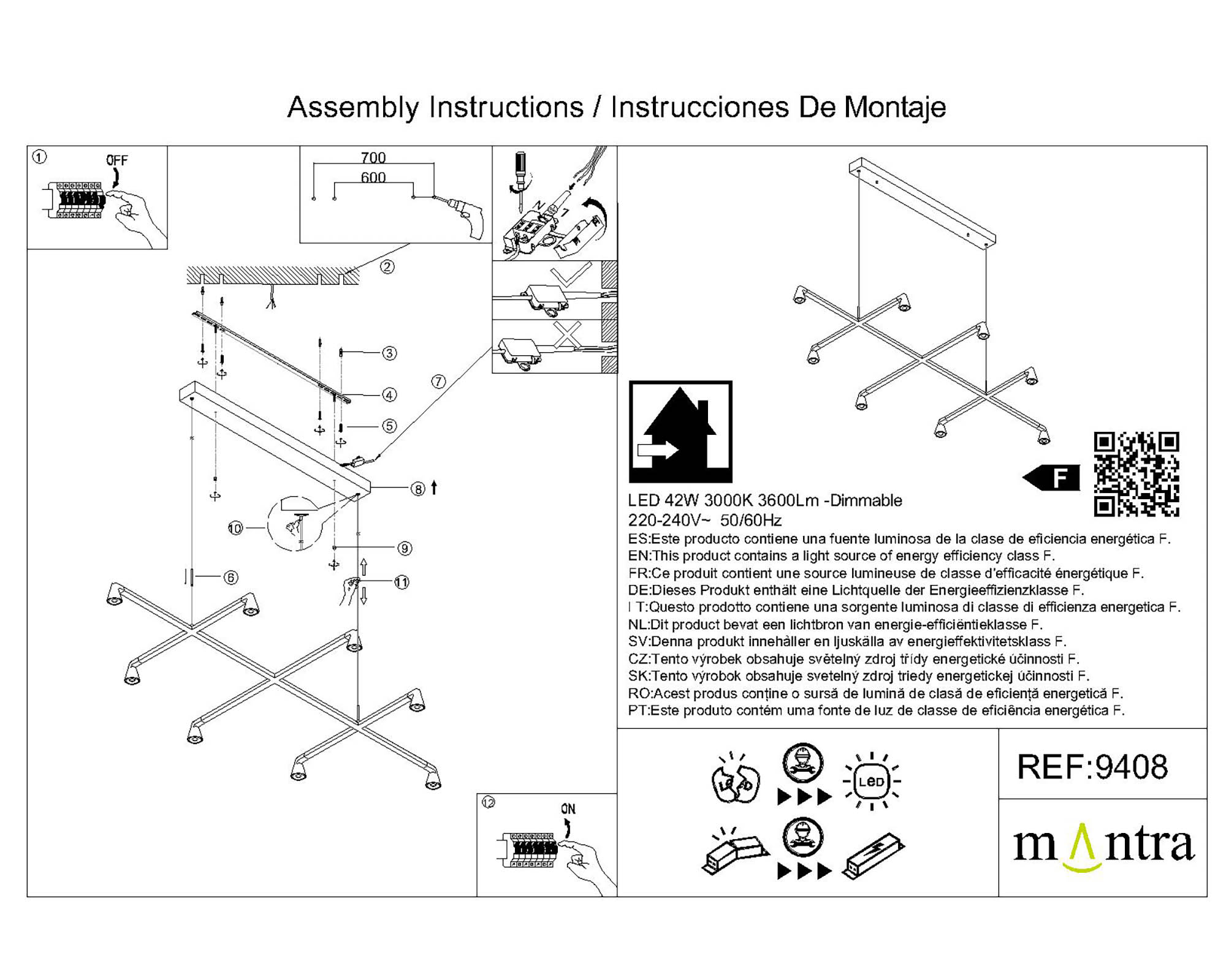 Мощность связана с величиной светового потока люмен (Lm), и от неё зависит яркостью лампы. - Общая мощность: 42 W