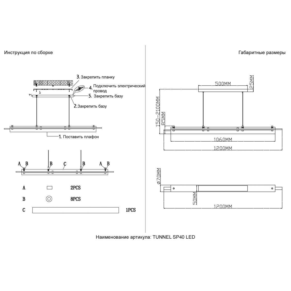 - Направление плафонов: Плафон вниз