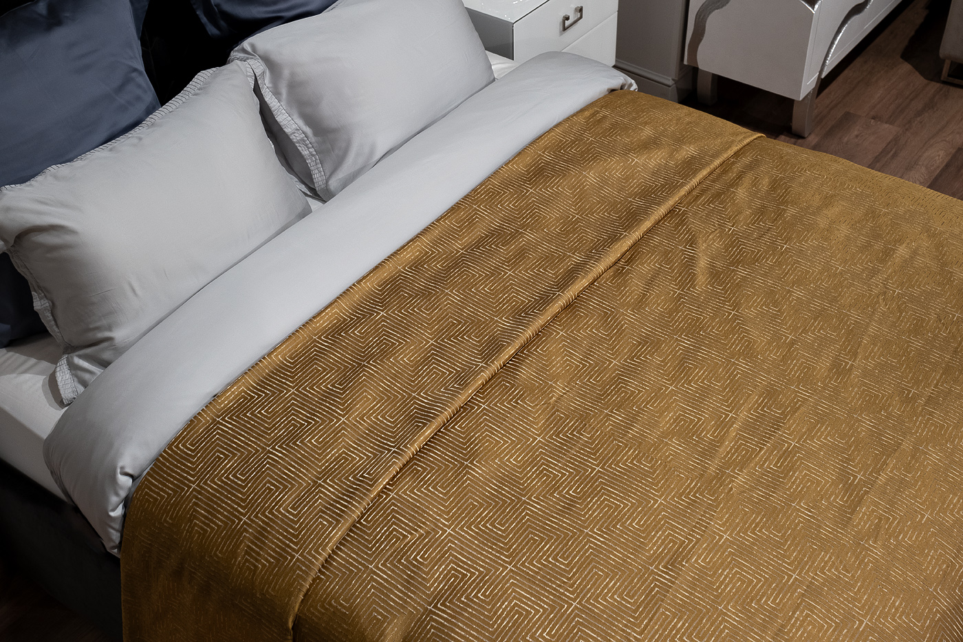 Жаккардовое покрывало Gloss с интересным геометрическим рисунком. Красота геометрии заключаются в ее универсальности и простоте. Ткань с таким рисунком подходит для интерьеров как в классических, так и в современных направлениях, и служит ярким акцентом, притягивающим взгляд. Изделие представлено в бежевом цвете. УХОД: Деликатная машинная стирка при температуре не выше 30 градусов. Отбеливание запрещено. Гладить при средней температуре до 150 градусов. Разрешена сухая химчистка. Разрешена низкотемпературная машинная сушка.