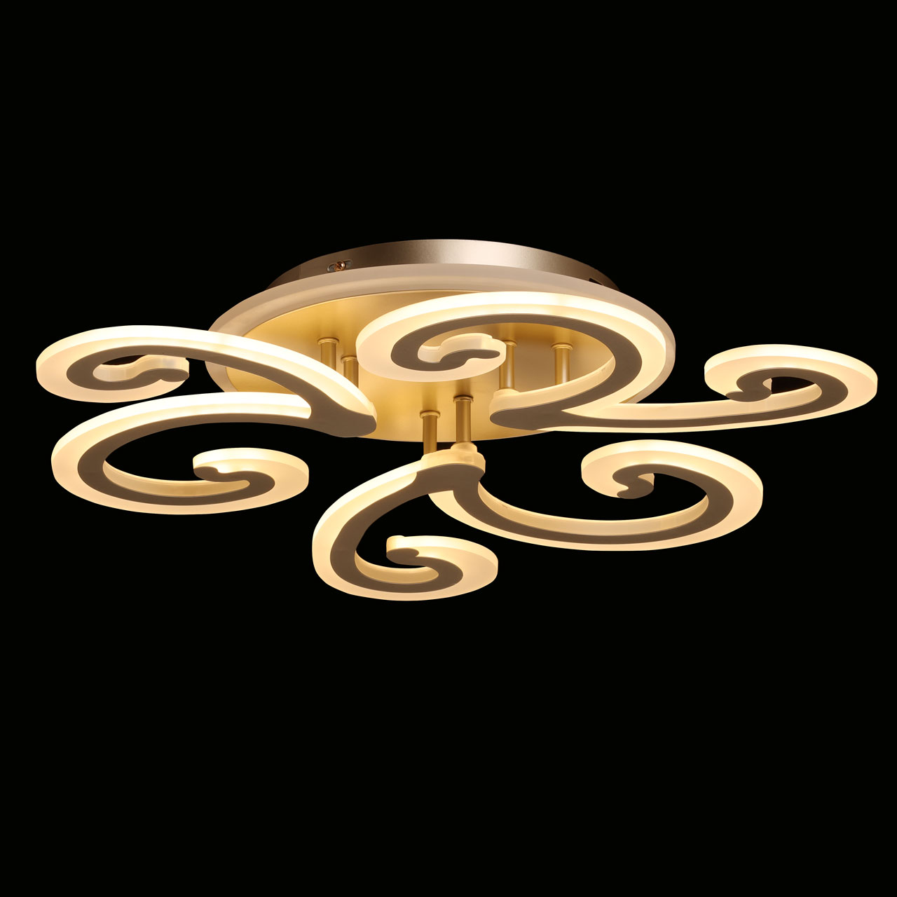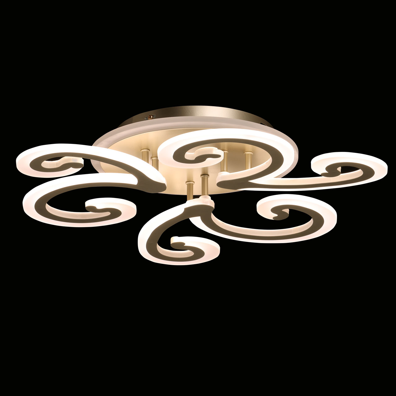 Привлекательная модель 424016004 от немецкого производителя De City относится к коллекции -Мадлен, изумительно подойдет для установки на потолок спальни , гостиной в стиле хай-тек, в люстре встроен светодиодный элемент мощностью. 112W площадь освещения помещения 29кв.м. Материал арматуры металл матовое золото цвета , плафоны акрил матового белого цвета .Наличие ПДУ позволяет управлять режимами освещения. Плавный диммер создает требуемое настроение в помещении. Данную модель всегда можете купить в интернет-магазине 220svet.