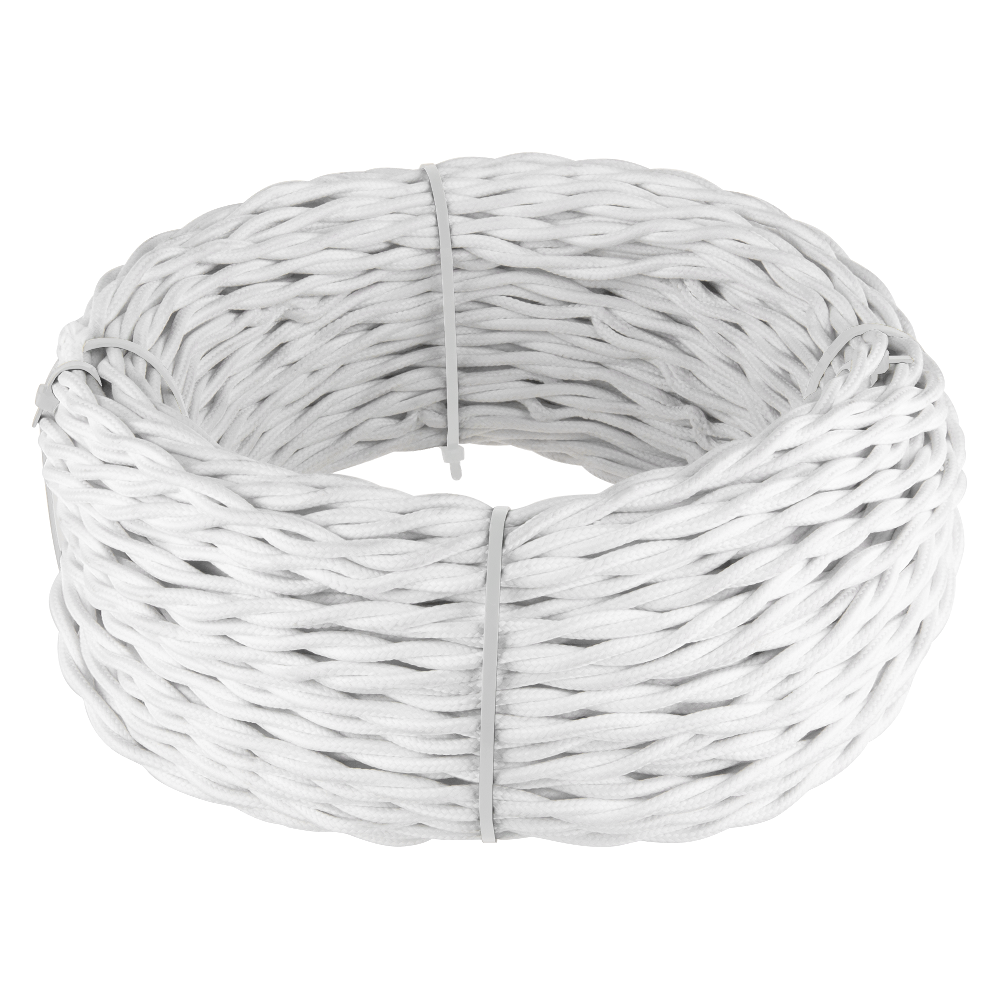 Ретро кабель витой 3х2,5 белый 50 м. Многожильный медный провод обеспечивает гибкость кабеля и его высокие электротехнические характеристики. Наружная оплетка кабеля имитирует натуральный шелк.