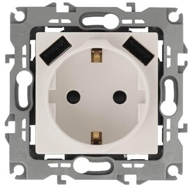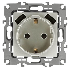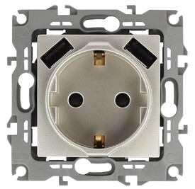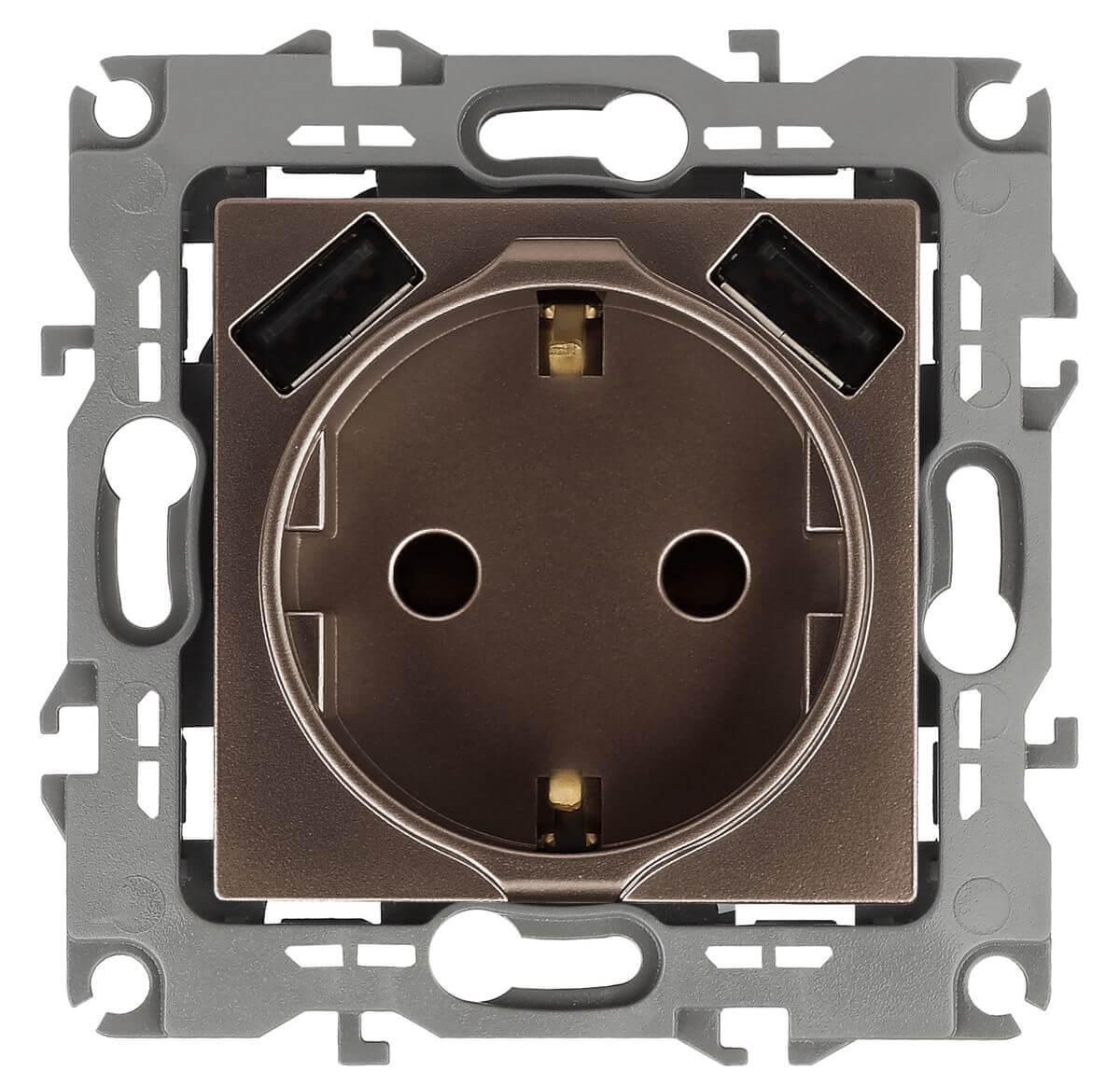 Купить "Розетка ЭРА Intro Solo Schuko P+E 16A 250V со шторками 2хUSB бронза 12-4109-13 Б0047847"