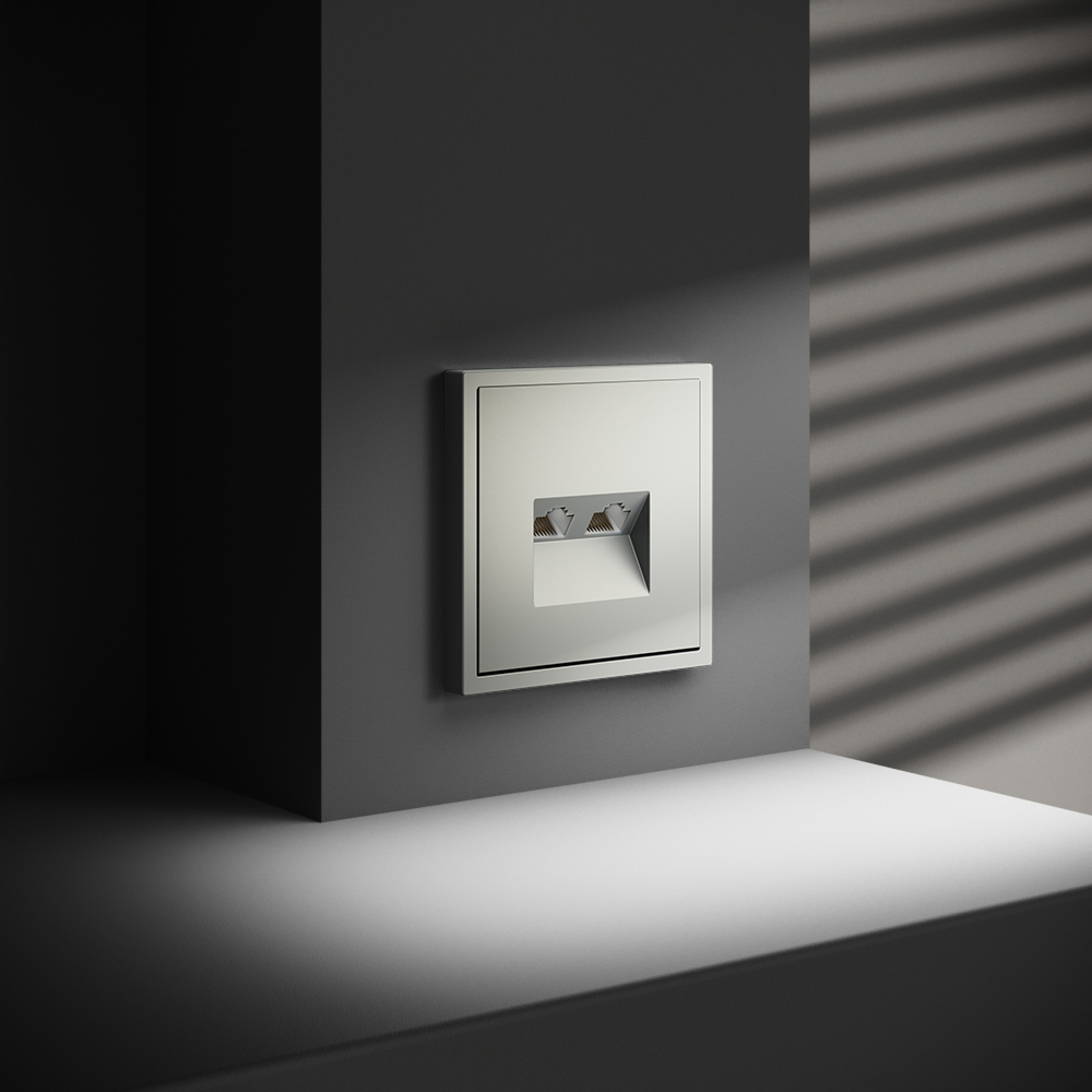 Купить "Розетка компьютерная встраиваемая двойная RJ45+RJ45 кат.6 Voltum S70 VLS060205 (сталь)"