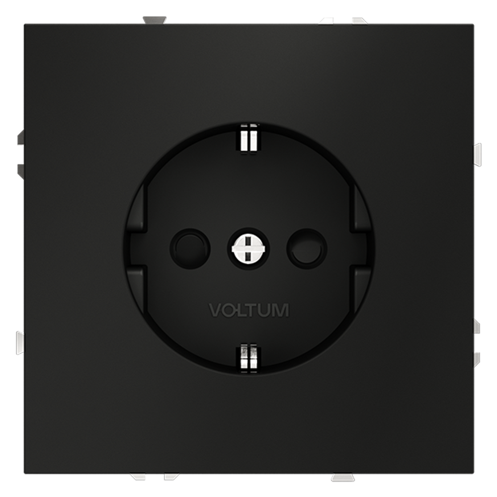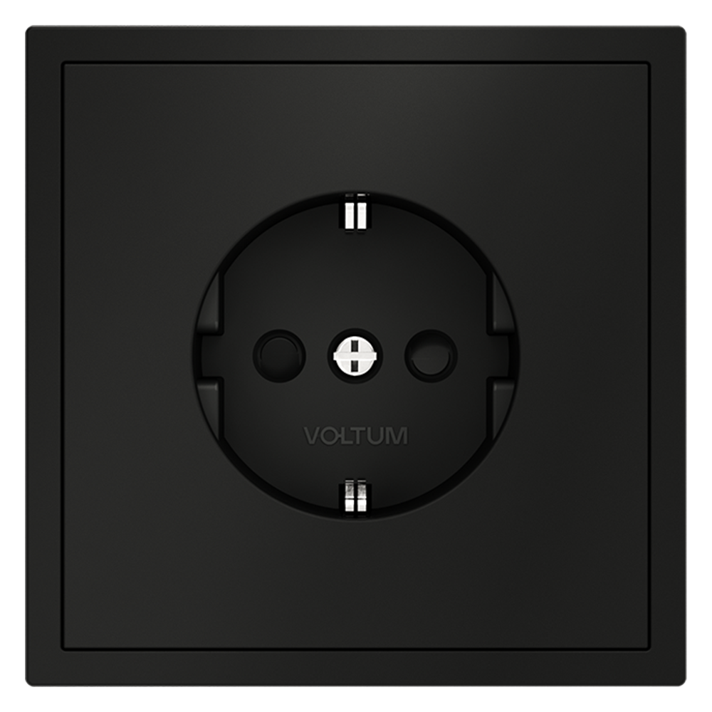 Купить "Розетка встраиваемая с заземлением и защитными шторками, 16А Voltum S70 VLS040208 (черный матовый)"