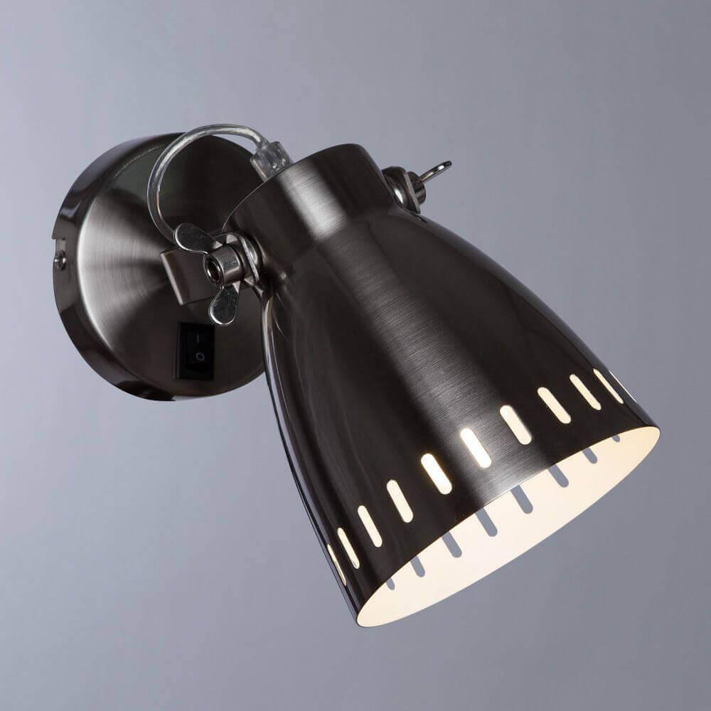 Спот настенный, поворотный цвета. Модель A2214AP-1SS, из коллекции 46 Silver от итальянского производителя Arte Lamp. Светильник состоит из 1 плафонов, форма которых, и выполнены они из металла, корпус светильника изготовлен из из металла. Для данного светильника рекомендуется использовать лампочки Накаливания с цоколем E27 мощностью 60W.