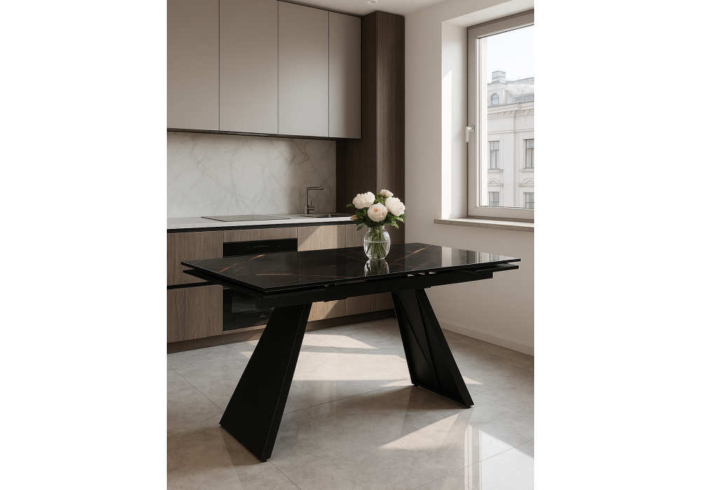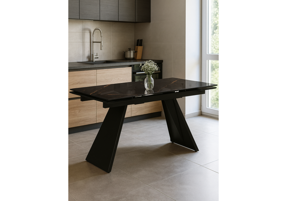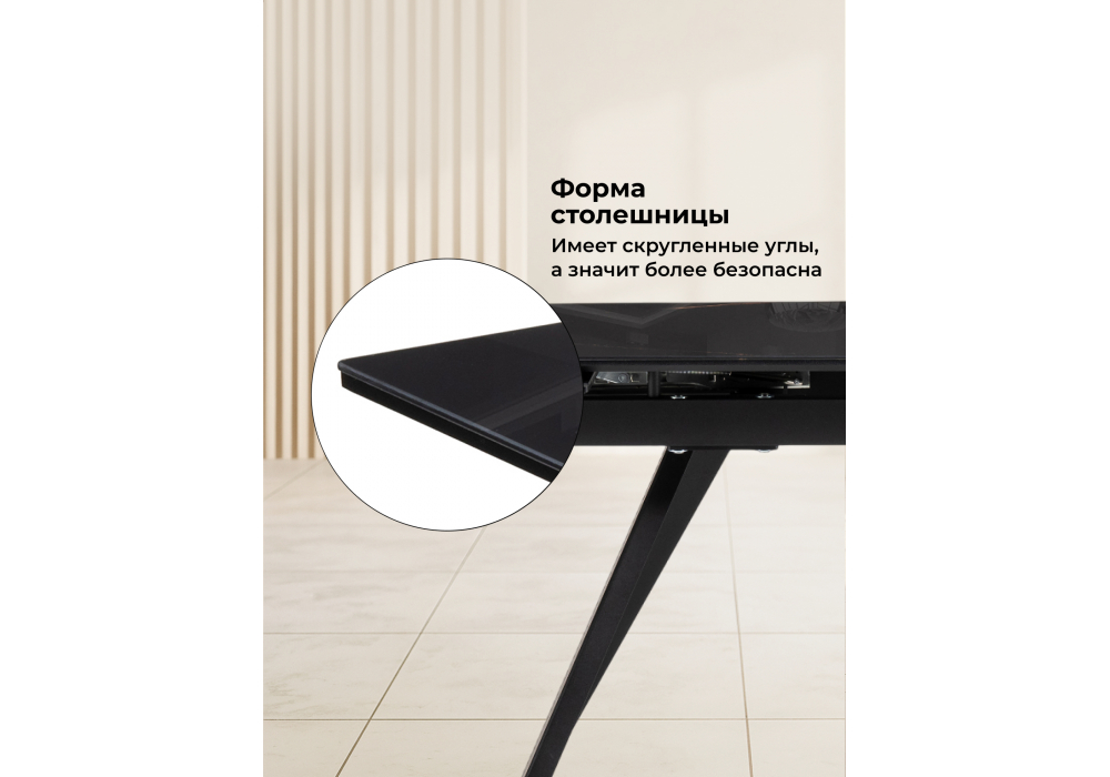 Стол стеклянный раздвижной Woodville Хорсборо 140(200)х80х79 обсидиан / черный 588007 Абакан