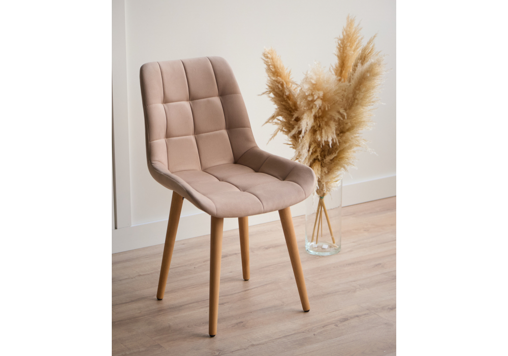 Материал каркаса - дерево; Материал сиденья - велюр; Материал обивки - велюр; Цвет ножек - натуральный; Ширина - 50; Глубина - 60; Высота - 80; Ширина сиденья - 44; Глубина сиденья - 41; Высота сиденья - 48;