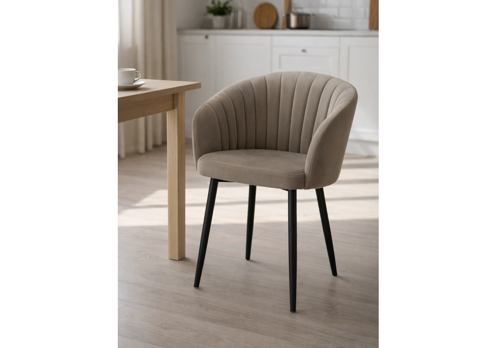 Материал каркаса - металл; Материал сиденья - велюр; Материал обивки - велюр; Цвет ножек - черный; Ширина - 60; Глубина - 53; Высота - 83; Ширина сиденья - 43; Глубина сиденья - 45; Высота сиденья - 50;