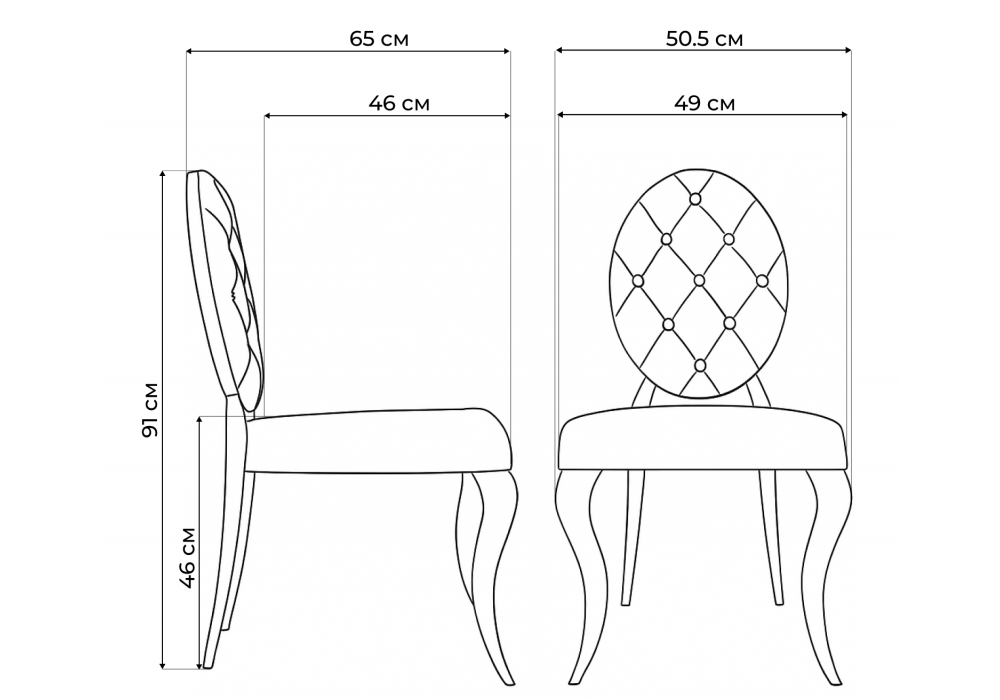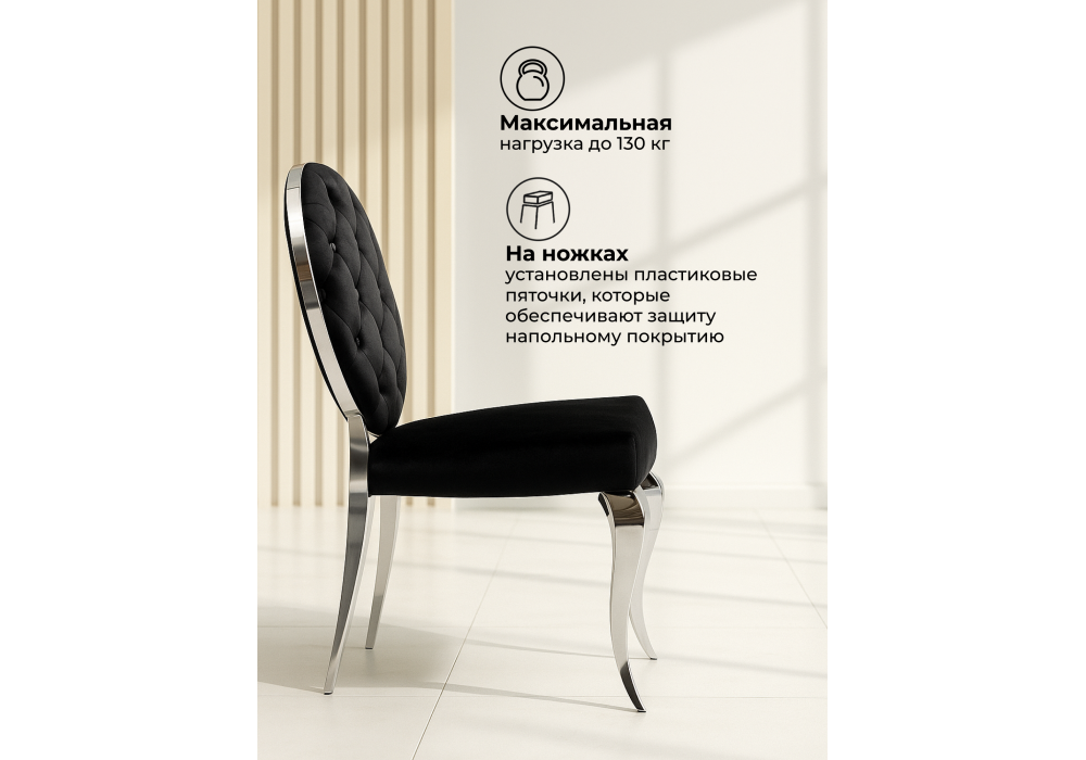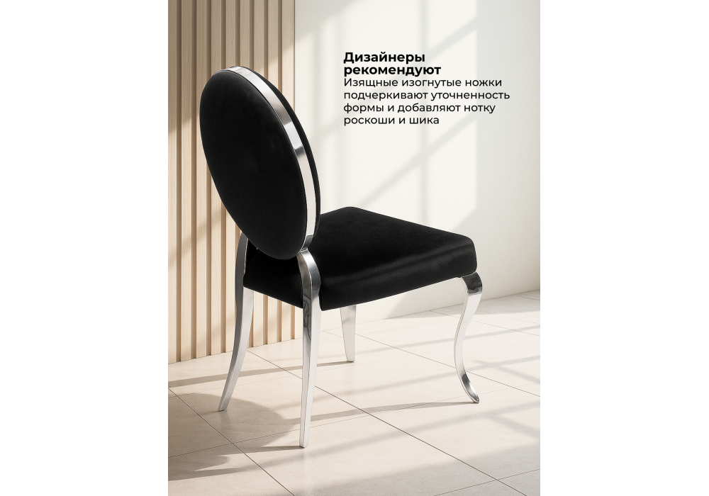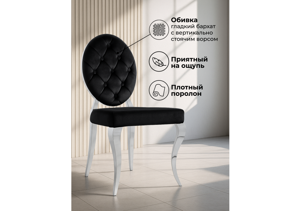 Материал каркаса - металл; Материал сиденья - велюр; Материал обивки - велюр; Цвет ножек - хром; Ширина - 50,5; Глубина - 65; Высота - 91; Ширина сиденья - 49; Глубина сиденья - 46; Высота сиденья - 46;