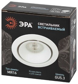 Светильник встраиваемый алюминиевый ЭРА KL107 WH/SL под лампу MR16 GU5.3 белый/серебро Б0061096
