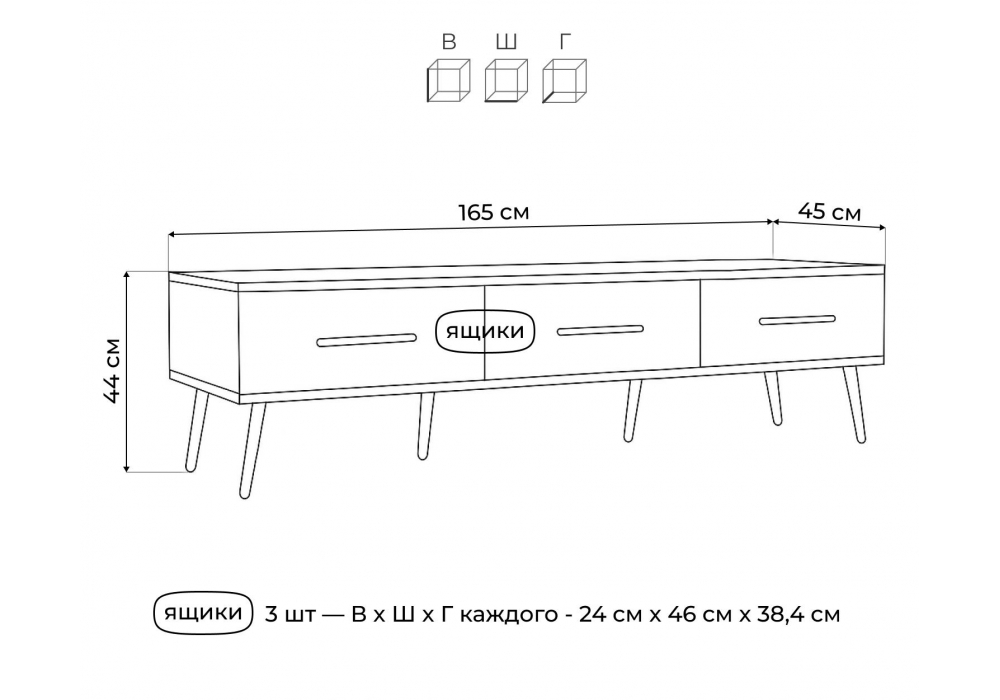 Материал каркаса - ЛДСП; Ширина - 165,2; Глубина - 45; Высота - 44;