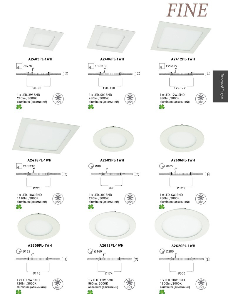 Встраиваемый светильник Arte Lamp Fine A2412PL-1WH Абакан