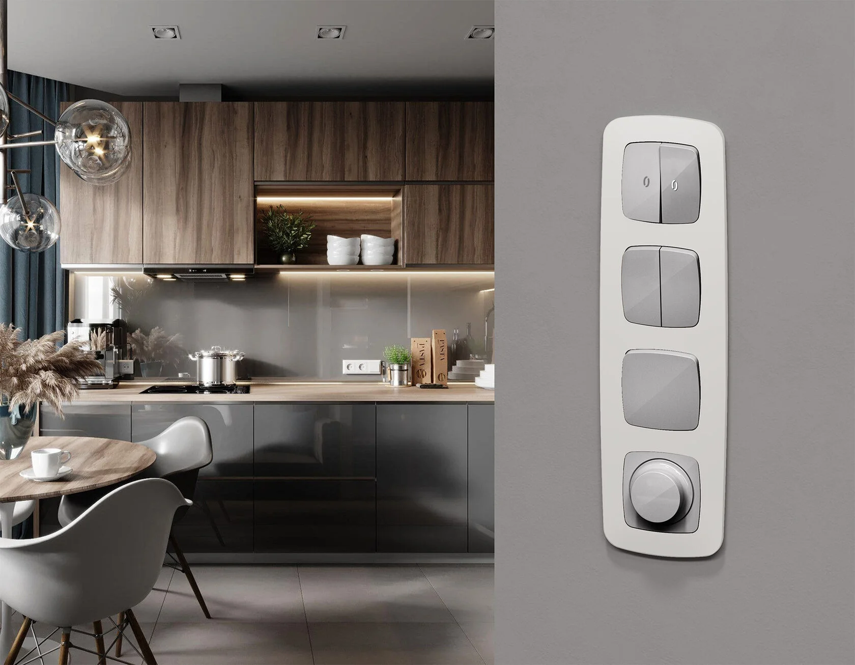 Многогранный ассортимент Ambrella Volt включает в себя механизмы, лицевые панели и рамки, а также комплекты, доступные в различных цветовых решениях. Продукция представлена в модульном исполнении, что позволяет гибко настраивать внешний вид и функциональность. Вам будет легко заменить лицевую панель, рамку или механизм, найдя идеальное сочетание цветов.
