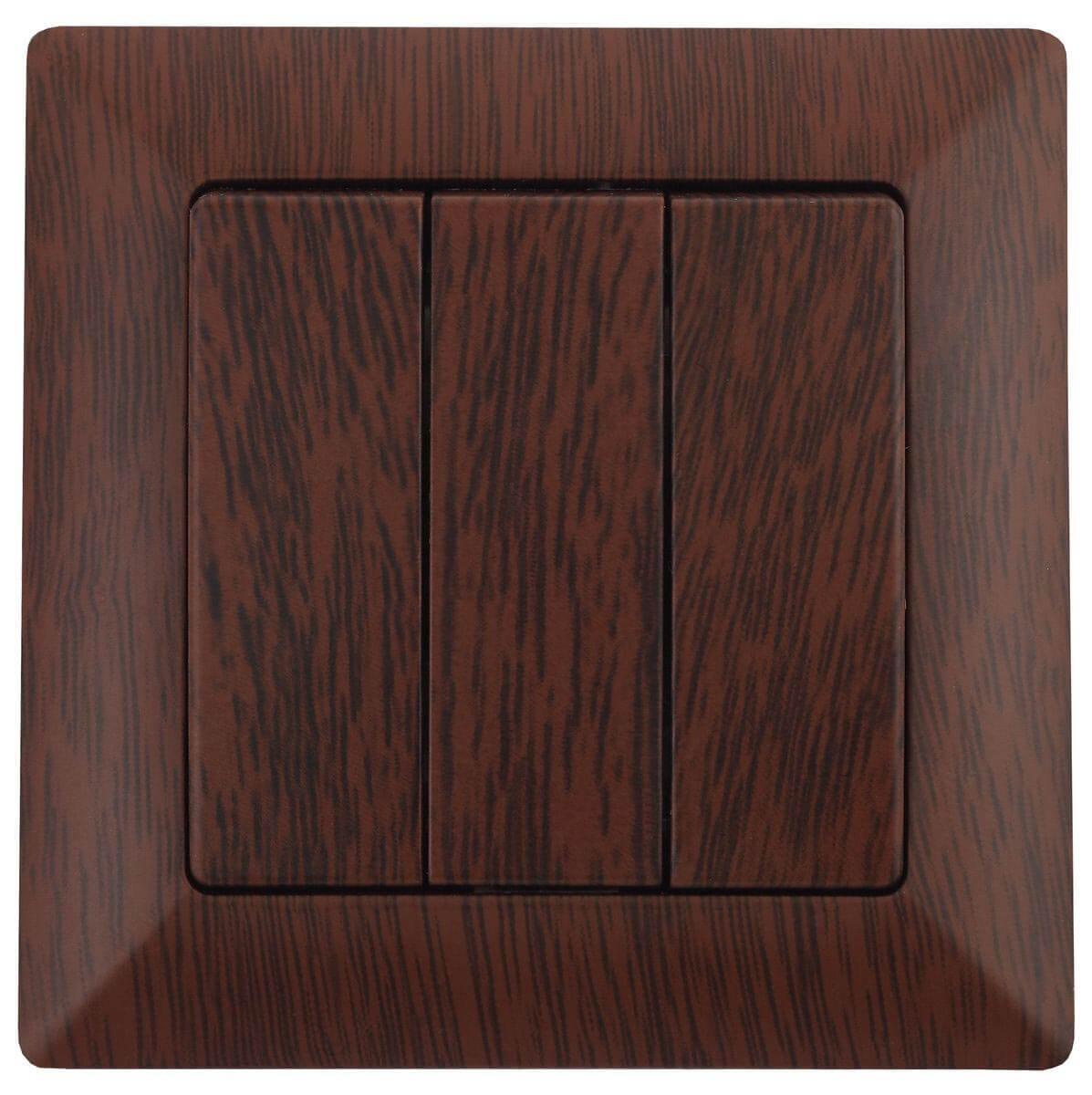 Купить "Выключатель трехклавишный ЭРА Intro Solo 10A 250V венге 4-106-10 Б0043303"